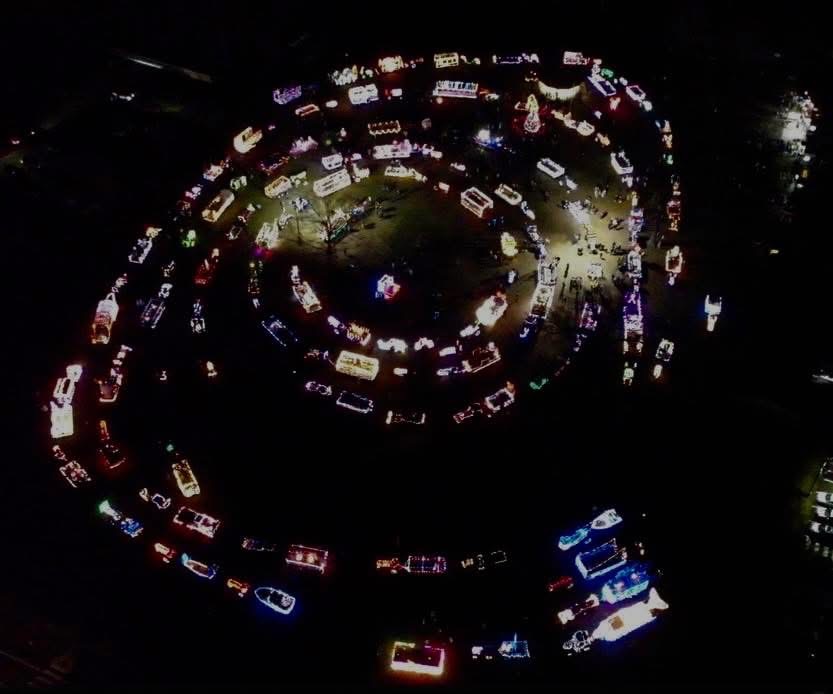 2025 – Well as much as many said, (including me!, we did not break 100. We had well over 100 sign up, but not all who signed up could make it. So after reviewing the video in its entirety, and counting several times, we had exactly 99 tractors participate! And as usual, we grew from the previous year with both participants and creativity! From the beautiful Christmas themed decorations to the extravagant wagons- it was amazing!